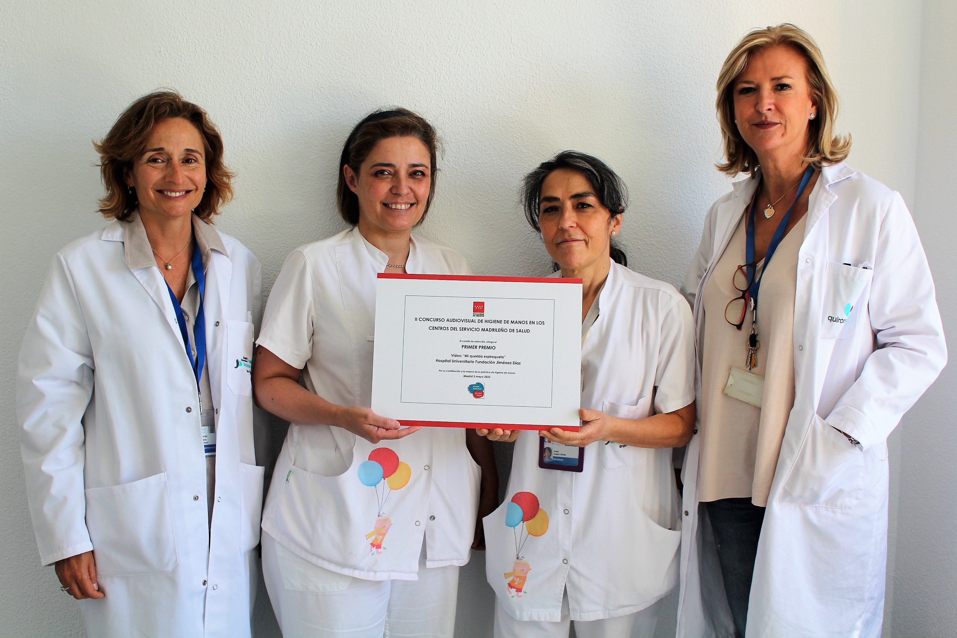 Es un honor comunicaros que el video "Mi querida espiroqueta", realizado y presentado por nuestro hospital al "II Concurso audiovisual de higiene de manos en los centros del Servicio Madrileño de Salud", cuyos galardones se entregaron el pasado 5 de mayo, coincidiendo con el Día Mundial de la Higiene de Manos, ha ganado por segundo año consecutivo el Primer Premio de este certamen, resultando vencedor entre nada menos que 27 candidaturas.