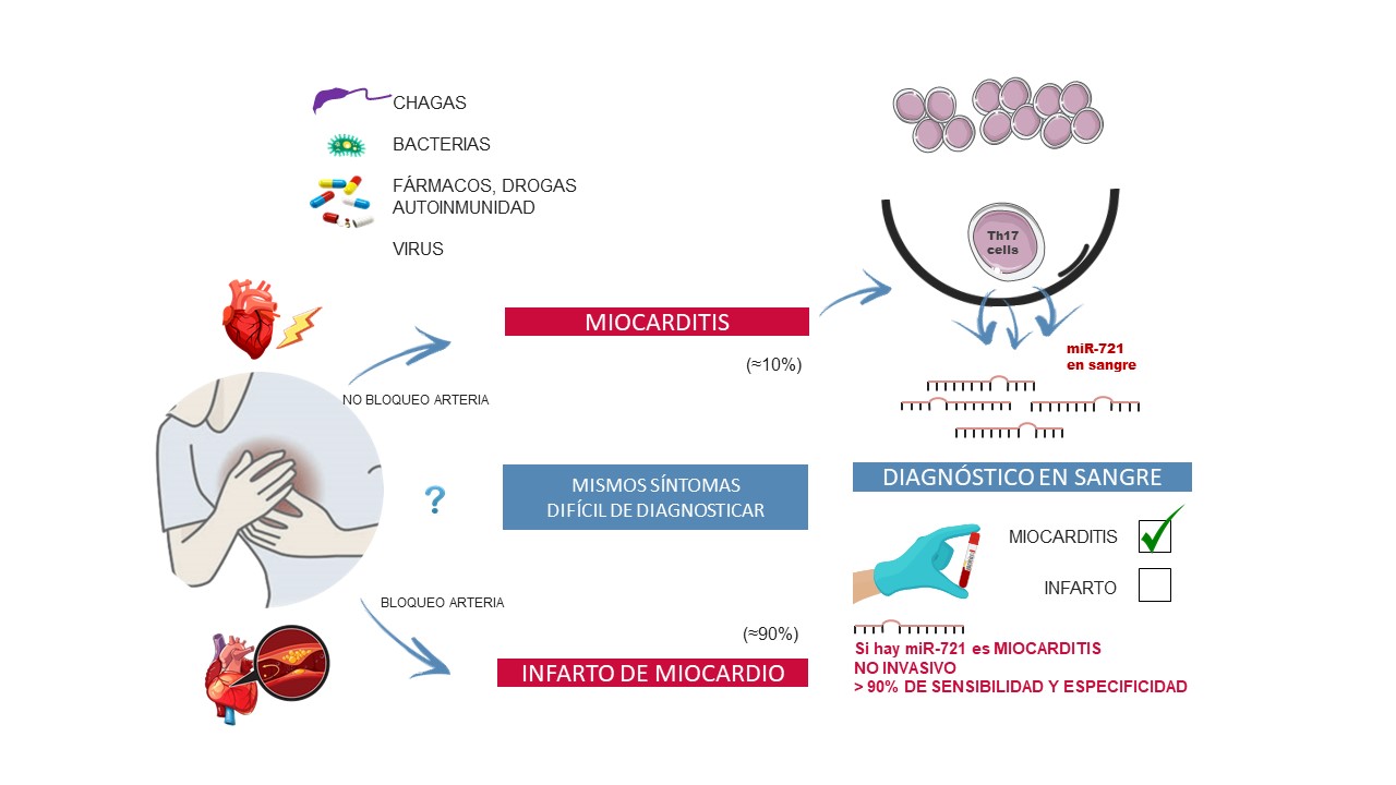 "El hallazgo del miR-721 tuvo lugar en el plasma de ratones con miocarditis autoinmune y viral. Este miRNA es sintetizado por las células autoinmunes Th17 que reconocen antígenos cardiacos derivados de proteínas como la alpha-miosina y atacan el miocardio, siendo responsables en gran medida de la fisiopatología de la enfermedad", explican Blanco-Domínguez y la Dra. Sánchez-Díaz, primeros autores del trabajo.